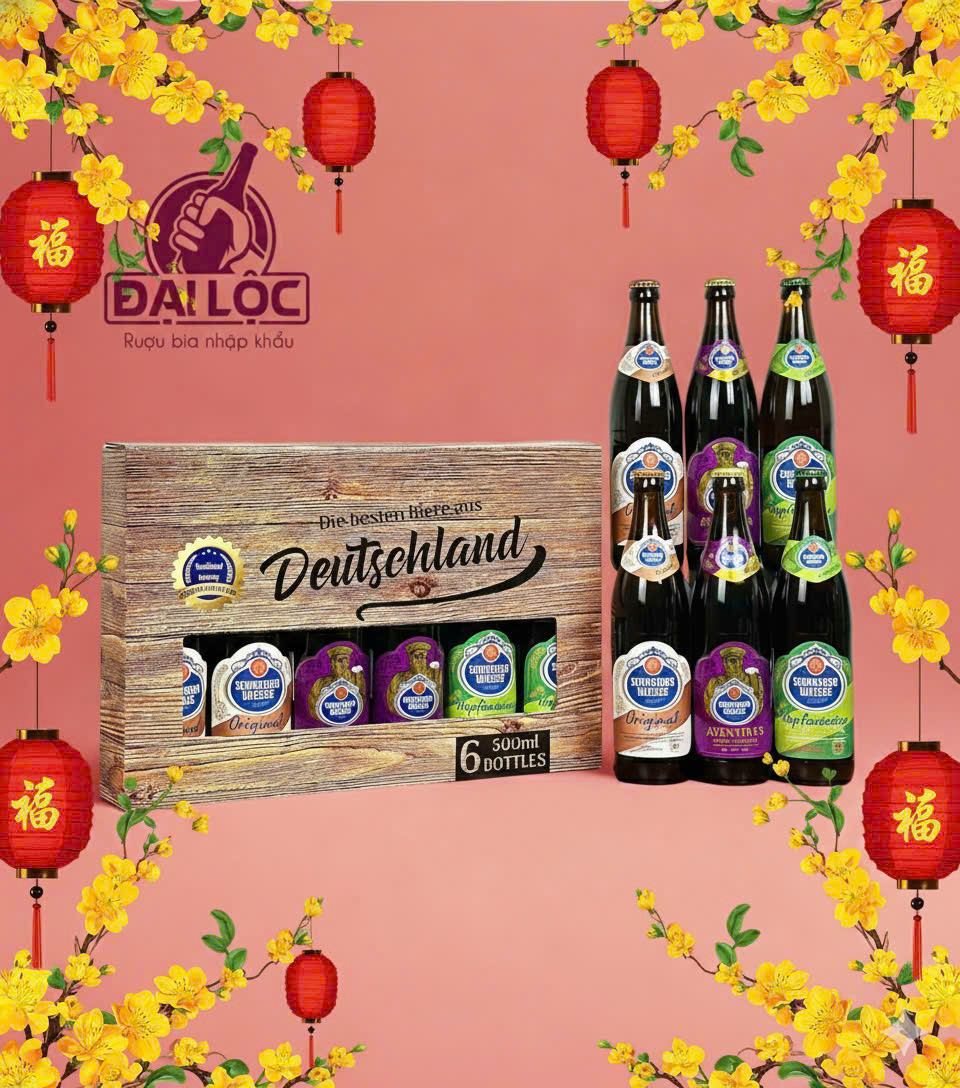 Hộp quà bia Đức Schneider Weisse – Hộp 6 chai 500ml là lựa chọn hoàn hảo dành cho những tín đồ yêu thích bia lúa mì thủ công cao cấp. Với hương vị đậm đà, hậu vị mượt mà và sản xuất theo Luật tinh khiết Đức – Reinheitsgebot từ năm 1516, bia Schneider Weisse mang đến trải nghiệm thưởng thức bia truyền thống chuẩn mực. Đây là món quà lý tưởng dành tặng đối tác, khách hàng hoặc thưởng thức cùng gia đình, bạn bè.